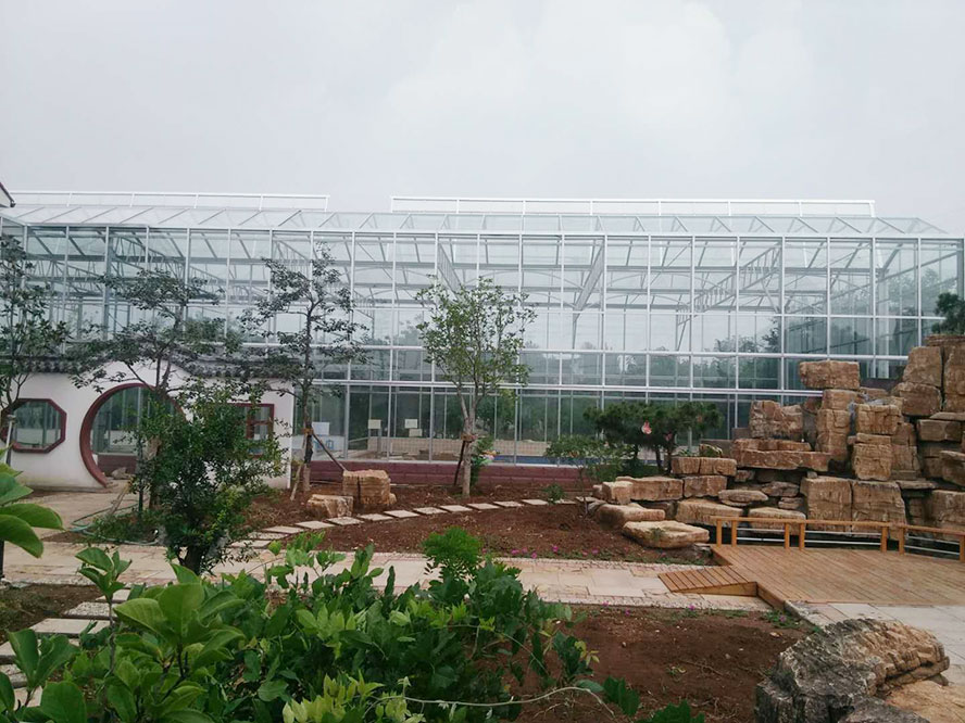 我們承建的生態(tài)餐廳,克服了種植溫室易結(jié)露,視野小的弊端,以大空間,舒適、環(huán)保為理念,設(shè)計開發(fā)了高屋脊、大跨度、大空間的用類型,覆蓋材料采用玻璃或PC板,外形造型美觀,恢弘大氣,內(nèi)部視野開闊,寬敞明亮。置身與其中,既能感受田園的韻味,又能享受美味佳肴。